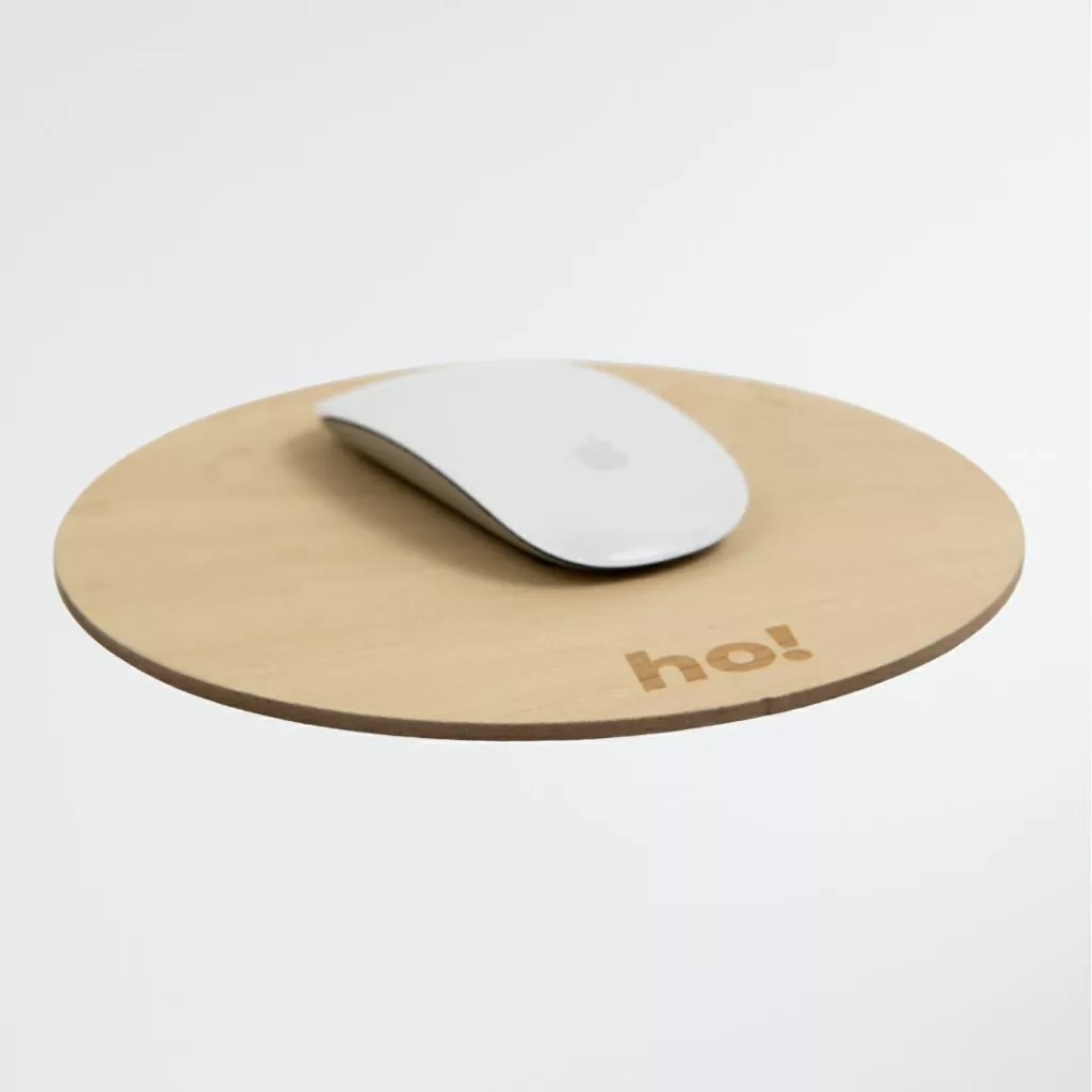 ho! Mouse Pad Redondo, en madera guatambú de 19,5 cm. de diámetro y 5.5 mm. de espesor.